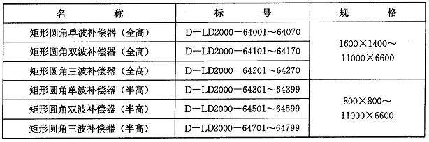 矩形圆角补偿器(CE波形)按矩形管道的公称通经规格确定。由于波纹管圆角的限制,全高和半高均删除了小口径的规格,编目如下: