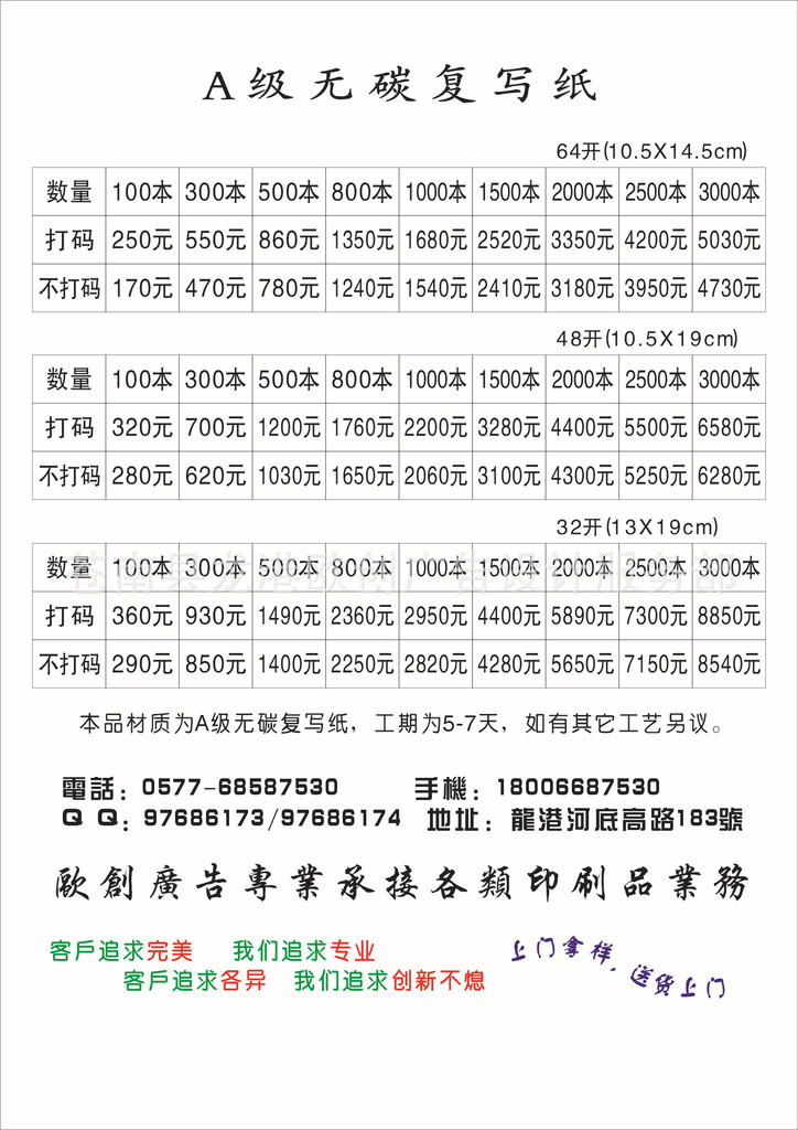 ***名片、传单、企业画册、包装盒、手提袋、无纺布袋、纸袋、台历、挂历、吊牌、不干胶、纸卡、广告扇、连单各类印刷品,生产加工一条龙服务!!!