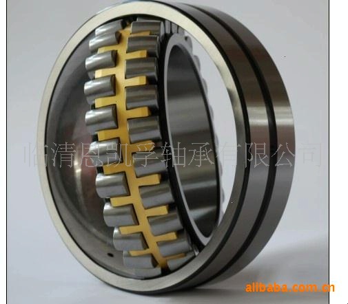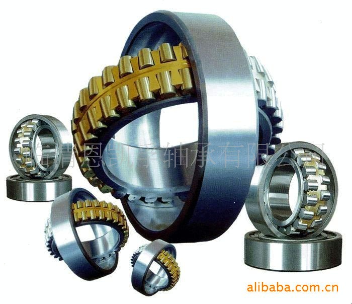 调心滚子轴承有两列对称型球面滚子,外圈有一条共用的球面滚道,内圈有两条与轴承轴线倾斜一角度的滚道,具有良好的调心性能,当轴受力弯曲或安装不同心时轴承仍可正常使用,调心性随轴承尺寸系列不同而异,一般所允许的调心角度为1~2.5度 ,该类型轴承的负荷能力较大,除能承受径向负荷外轴承还能承受双向作用的轴向负荷,具有较好的抗冲击能力,一般来说调心滚子轴承所允许的工作转速较低。