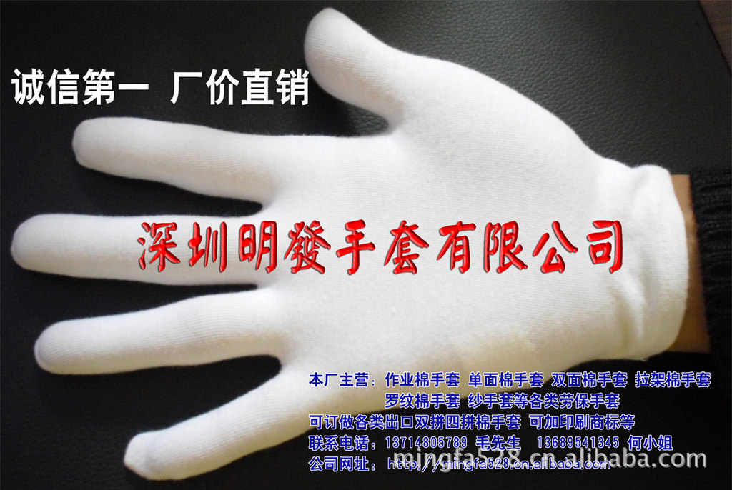 白色(或米白)、纯棉单面手套、普通21CM、加长28CM