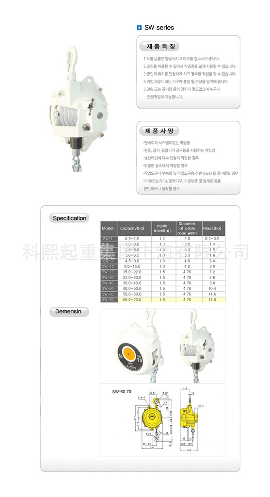 韩国三国SAMKOOK弹簧平衡器的技术参数: