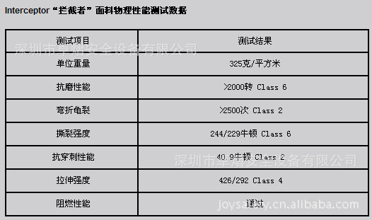 Interceptor“拦截者”面料物理性能测试数据