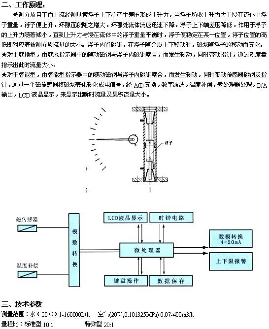 LZDH系列金属管浮子流量计智能变送器以MCU微处理器为核心,利用磁传感器,通过数字滤波,软件修正等数字信号处理技术,对磁场变化进行检测,并通过液晶显示屏幕,提供良好的人机交互界面,可输出4-20mA电流信号,上下限报警等多种信号。显示瞬间流量和积累流量,为用户提供更多方便,广泛应用于国防、化工、石油、冶金、能源、医药、轻工、食品、水处理等工业部门中的流量检测和过程控制。