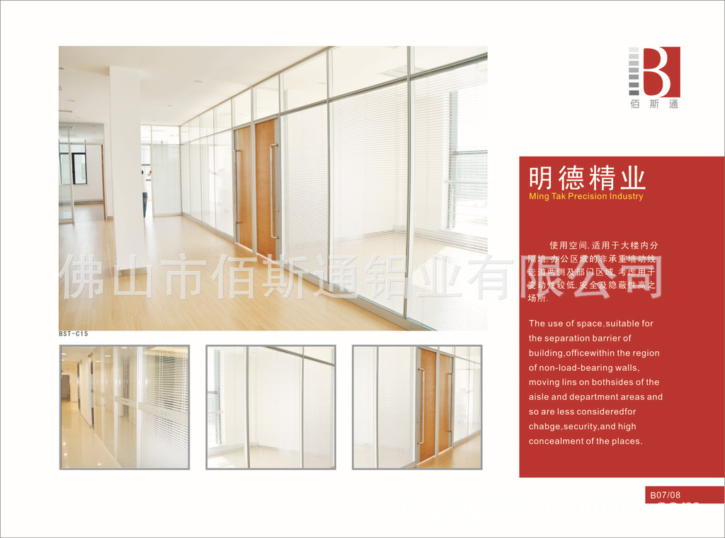 佛山佰斯通铝业:专注办公隔断铝型材,隔断铝型材,玻璃百叶隔断铝型材,欢迎来电咨询