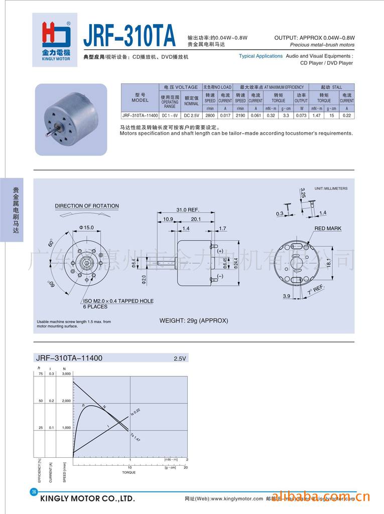| 品牌:金力电机 | 产品类型:有刷直流电动机 | 型号:JL-RF310/320-12400 |