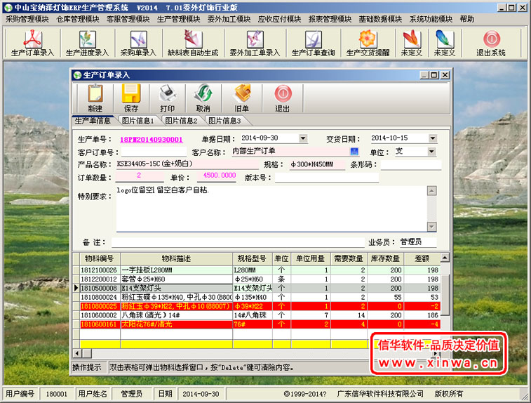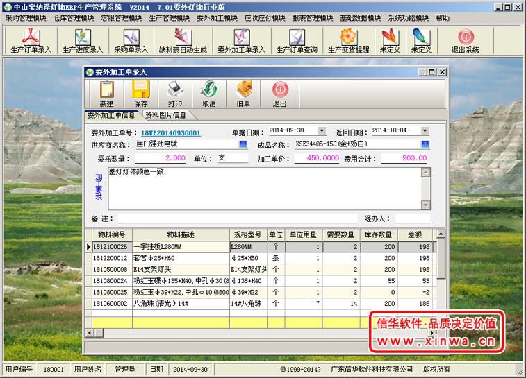 《信华ERP生产管理软件》电子行业版适合于生产订单非常多,材料构成复杂,采购管理混乱的电子、电器、灯饰照明等生产型企业使用。