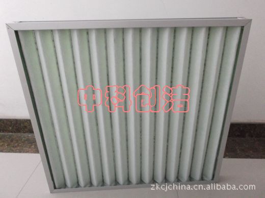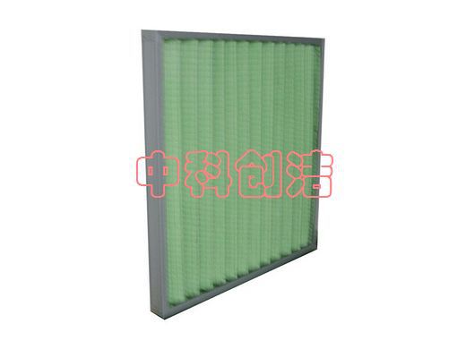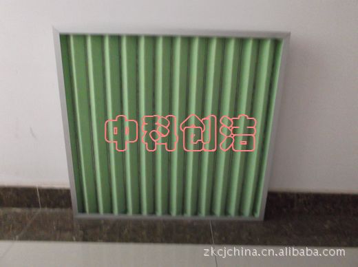 初效过滤器以无纺布、玻璃纤维等为滤料,楔型折叠造型以加大过滤面积,金属丝网夹紧或内置金属龙骨架支撑,配以金属外框,制成板式结构。具阻力小,寿命长,可冲洗,经济耐用等特点。