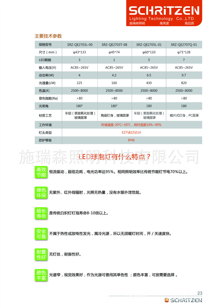 2、LED灯泡是一款综合应用LED电光源,采用透镜+铝外壳,LED线路板采用铝基板设计,起到良好的散热效果。独特的电路控制设计,真正达到了***节能,省电可达80%以上,超高亮度,显色指数高,是***新型的室内照明产品,超长寿命,使用时间大于50000小时。