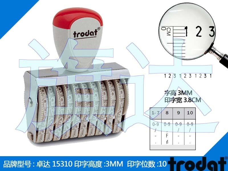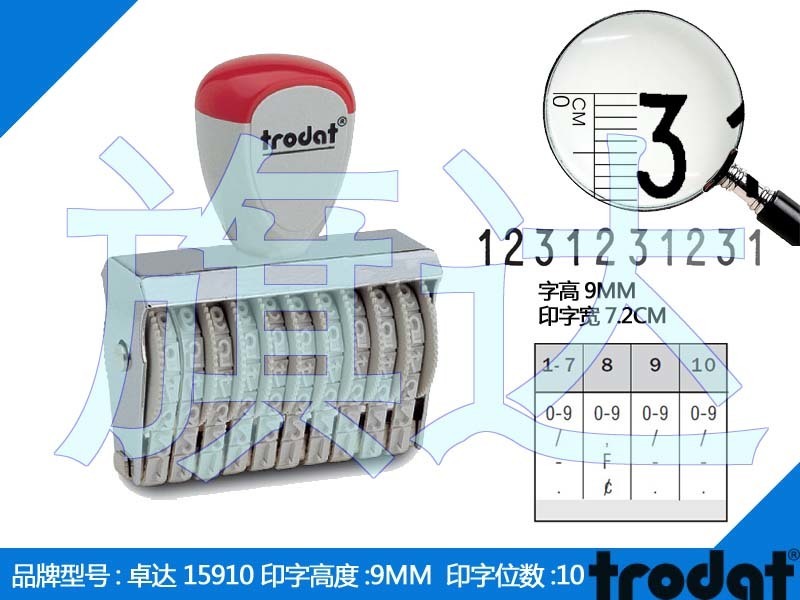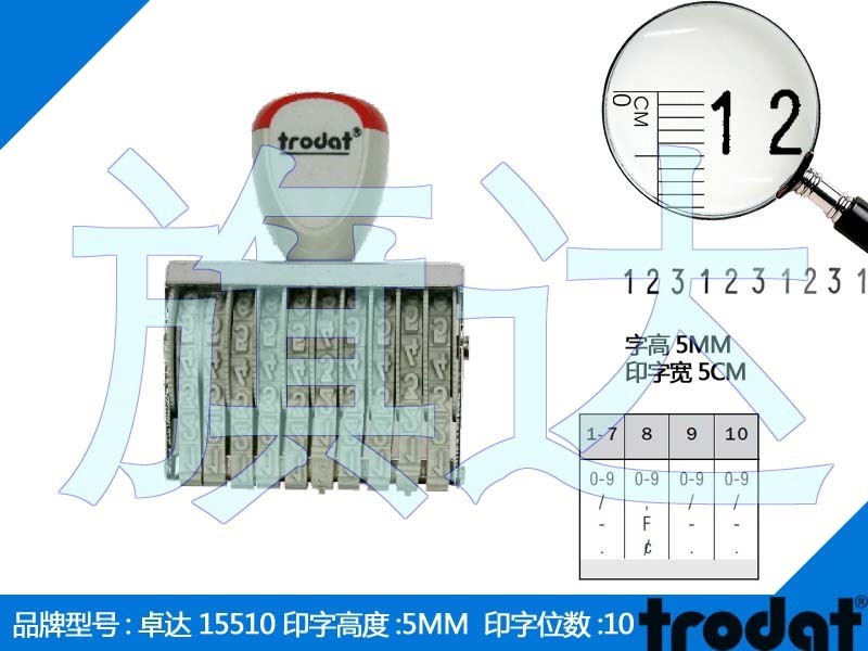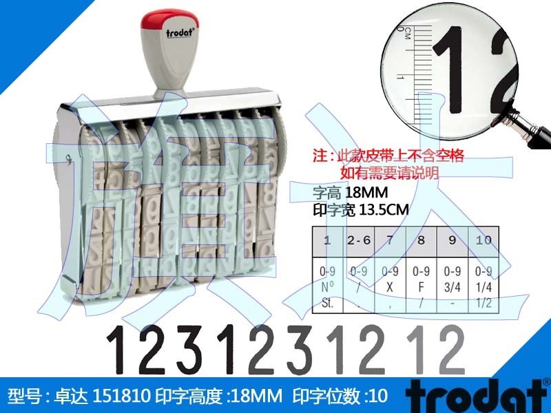 ④除0-9数字外,每条皮带上还有- . / +等符号,不仅可盖印编号,盖印日期同样适合。