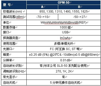 OPM-50系列全功能掌上型光功率计,是针对光网络安装、验收及维护特点而全新设计开发的产品。作为一款综合型光功率计,其与本公司的SLS-50系列稳定光源配合使用,能准确测量光纤的损耗,并为评估光纤链路传输质量提供***数据。