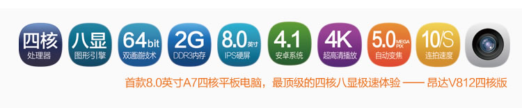 "昂达V812四核版"是全球首款全志A31四核处理器,同样也是全球首款基于ARM最新A7四核构架的平板电脑,是目前最为先进的平板处理器,性能比目前主流A9双核平板更为出色,速度更快、反应更灵敏。昂达还首次在平板处理器中配备了高达1M的二级缓存,犹如处理器上的高速公路,没有任何带宽的限制,带来2倍以上的数据处理与传输速度,大幅提升平板的使用体验。