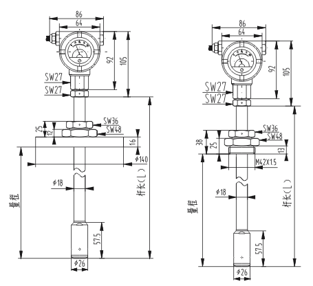 4、MPM416WK型产品的铠装钢管长度超过2m时,因发货不便,将向用户提供分段安装钢管,由用户在现场自行装配。