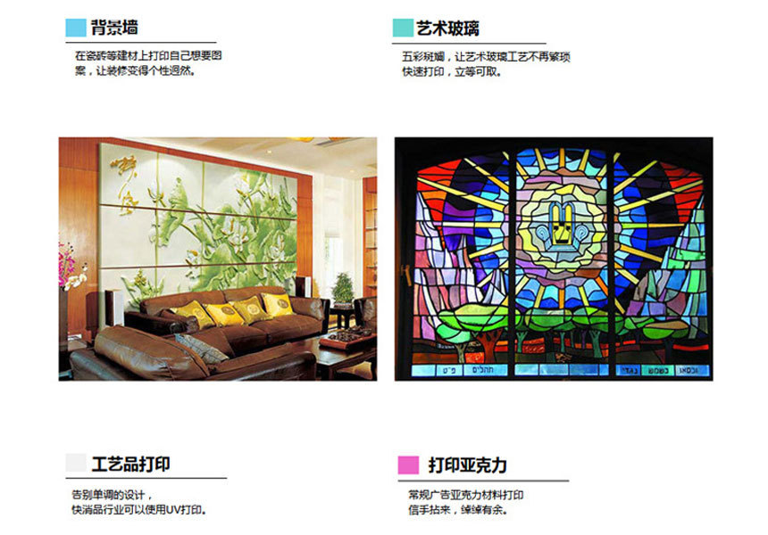 本机针对任意平面材质的印刷,免晒版、出菲林等传统制造,新一代数码印刷机彩印缤纷。