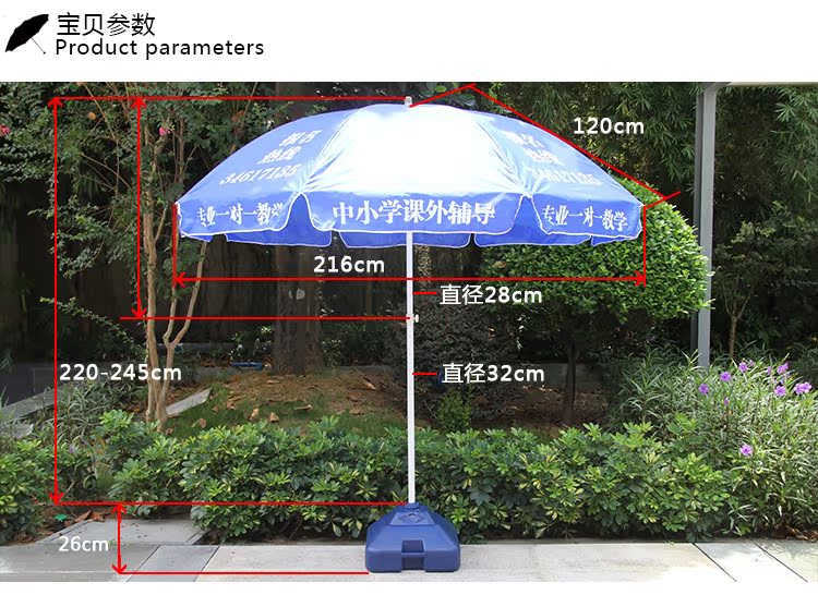 布料:防水处理牛津布(一般太阳伞面料无此处理)