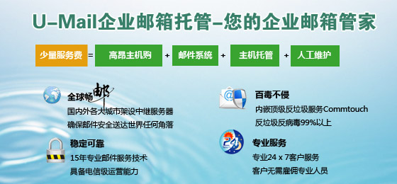 - 牵手U-Mail企业邮局,相当于同时拥有了***化的Internet通讯工具和***化的企业信息化管理工具,而费用相对较低: