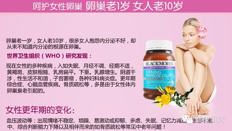 月见草本身就是一种很有药用价值的植物,在这里我就不一一介绍了,而当blackmores推出月见草油后,更被视为女性保健品的魁宝。然后,这是国人的一个误区,月见草油,并不单单是女性的专利产品,他反而对众多男性也有很大的帮助。这点下面会提到,先说说对于女性的功效。
