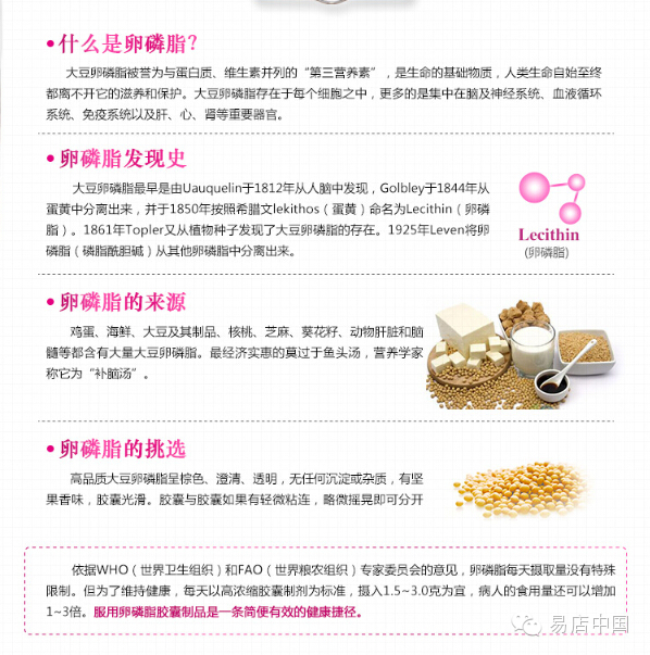 ***内的***含量过高时,会随血液循环沉积在皮肤上,而造成青春痘或斑点。卵磷脂是天然的***剂,能分解体内***,改善皮肤问题,且卵磷脂可维持肌肤细胞膜的完整及保水性,减少肌肤干燥粗糙或***的产生,可延缓老化,使肌肤变得光滑柔润。