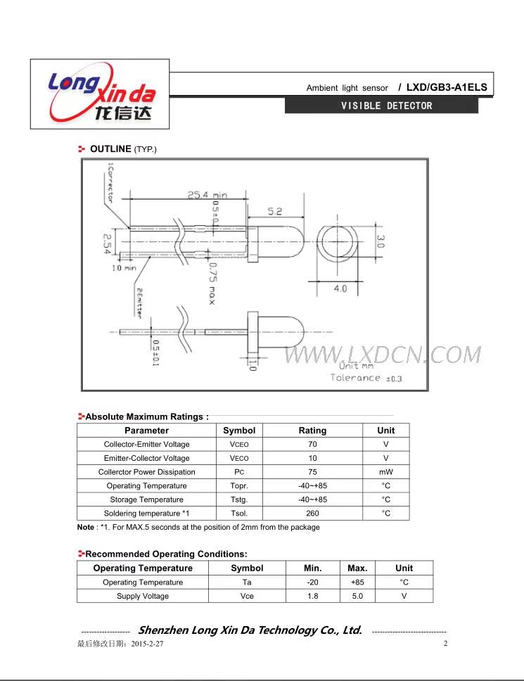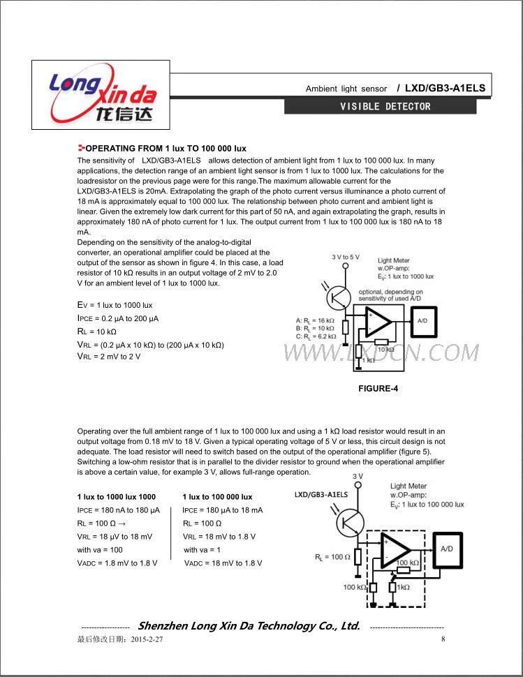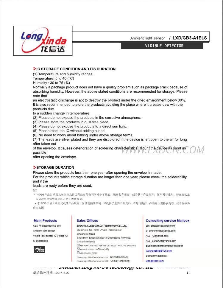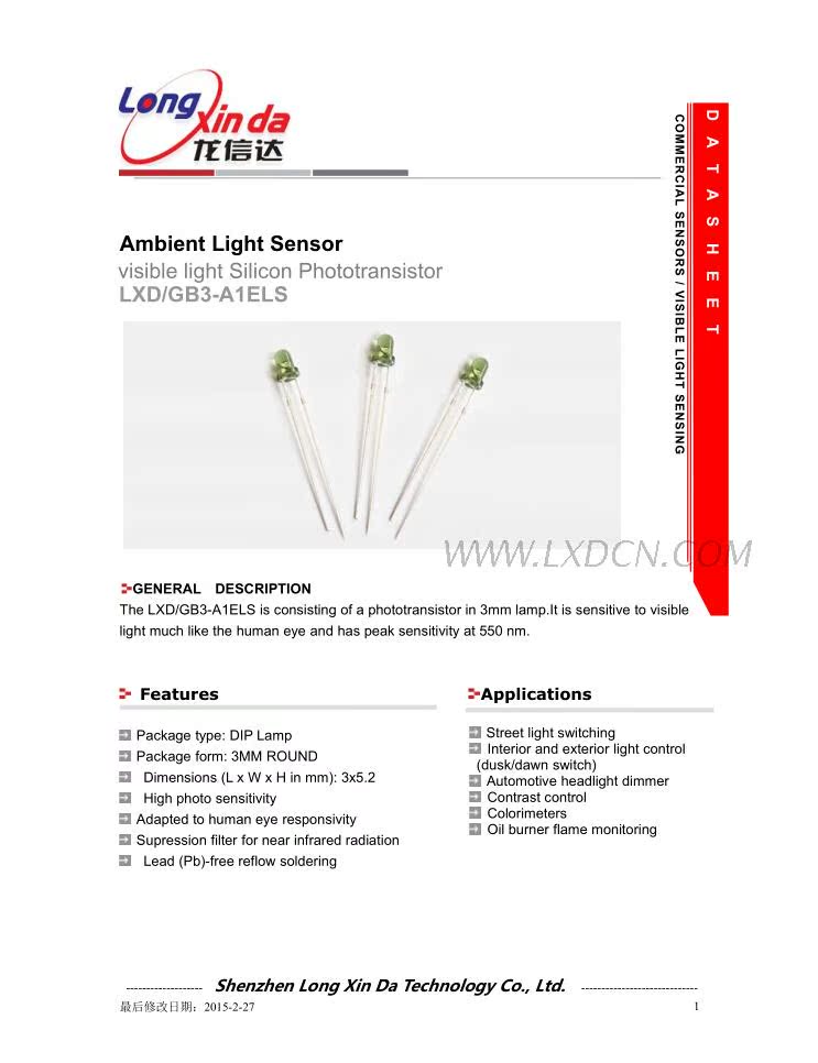 深圳市龙信达科技有限公司成立于2002年2月是专业致力于光敏电阻等敏感性元器件的股份制企业,公司座落于中国—深圳。目前,公司已拥有光敏电阻Φ3,Φ4,Φ5,Φ7,Φ11,Φ12,Φ20,Φ25及金属壳玻璃封装光敏电阻等多种系列传感器件产品,年生产能力均在一亿只以上,各项指标均达到国际同类产品的先进水......