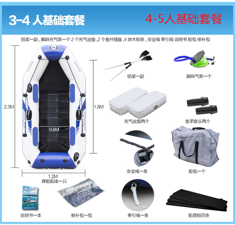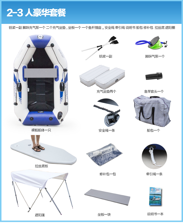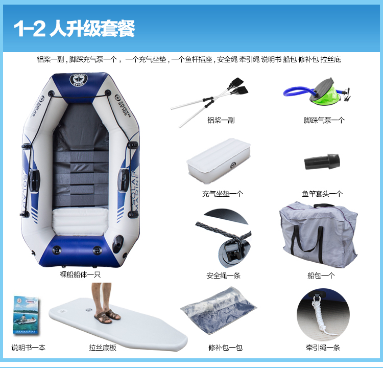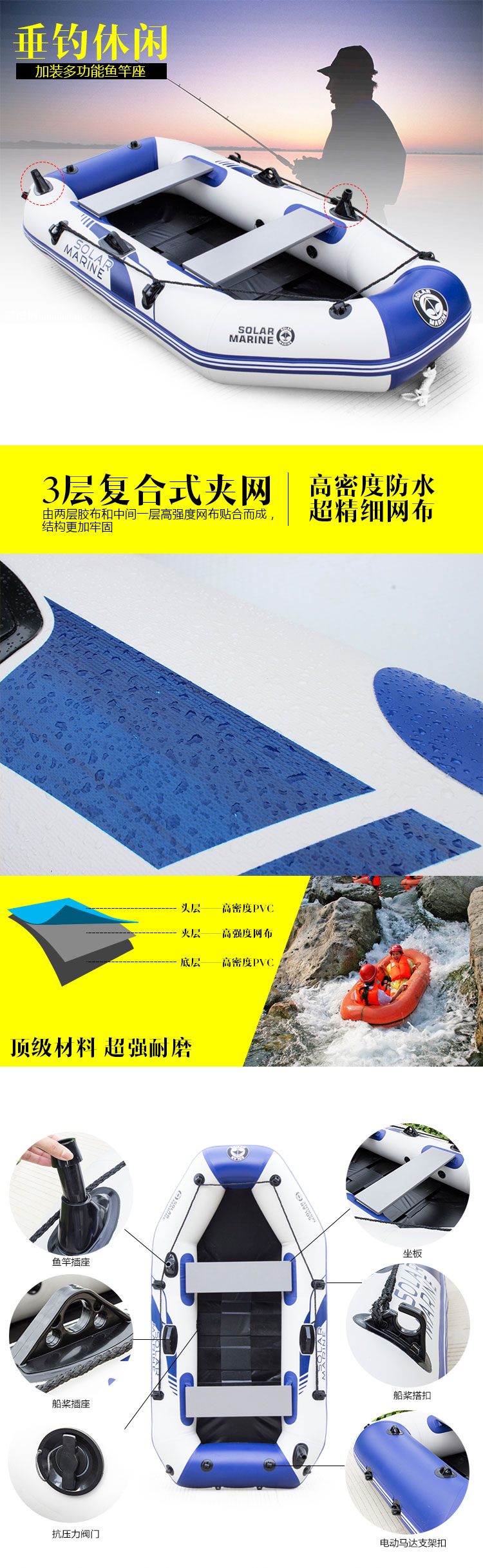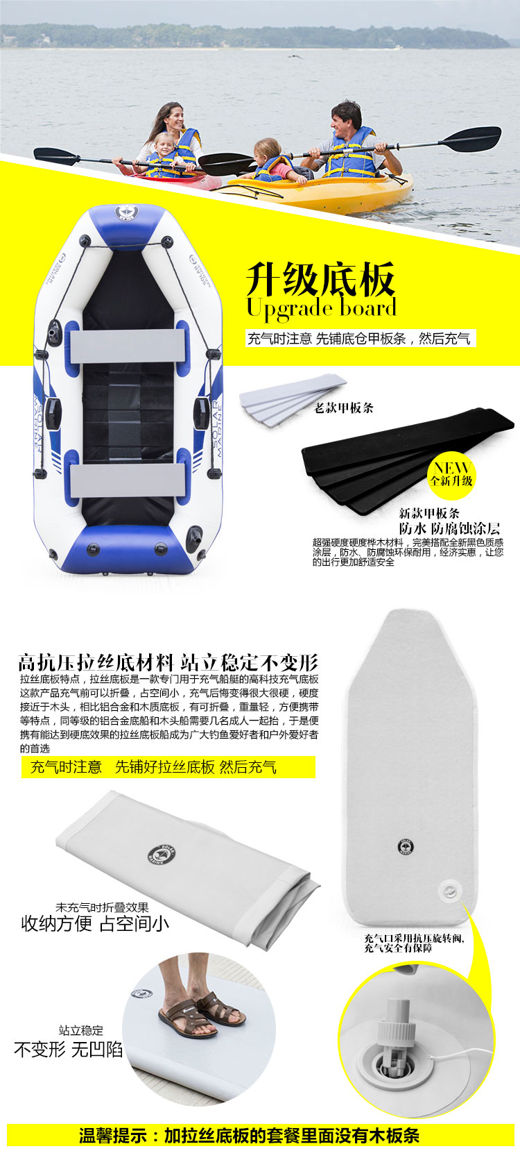 三人气垫船橡皮艇充气船硬底 冲锋舟***船加厚皮划艇二人橡皮船400元
