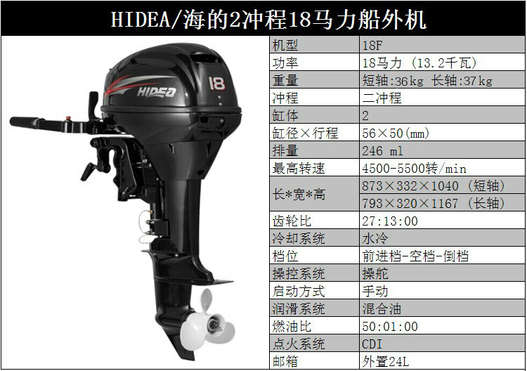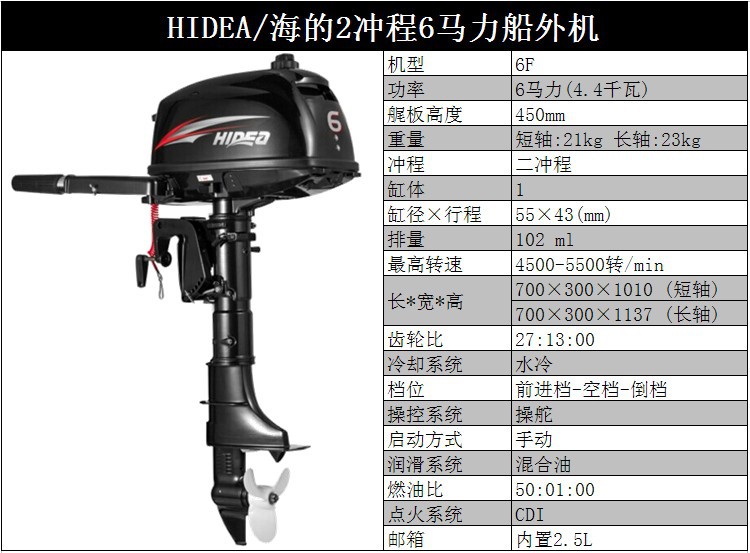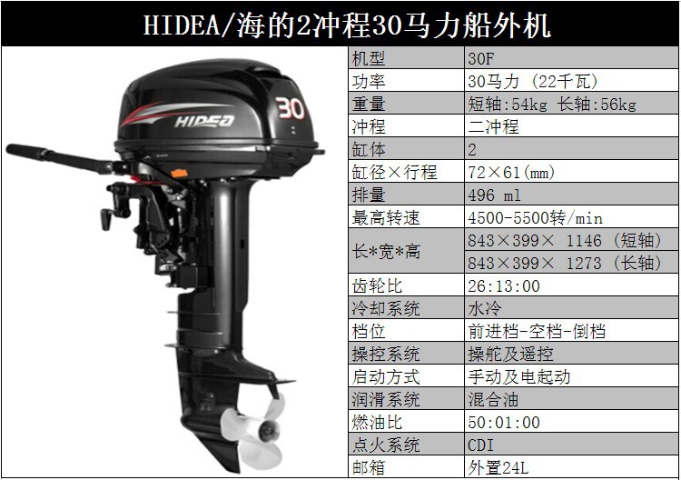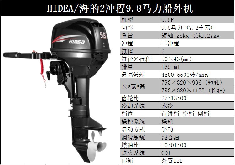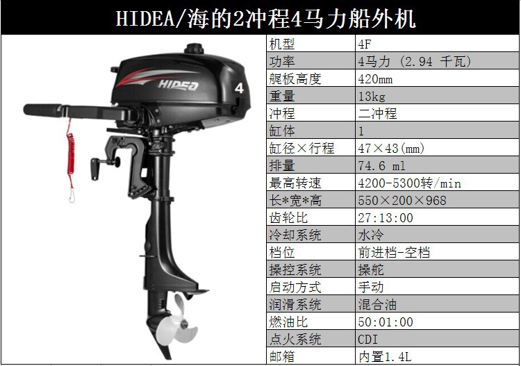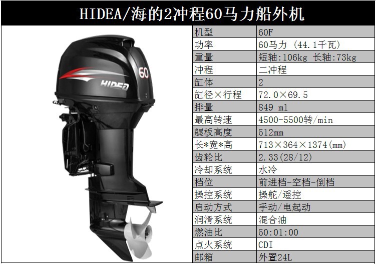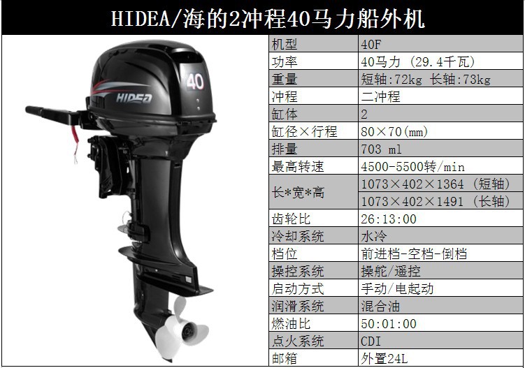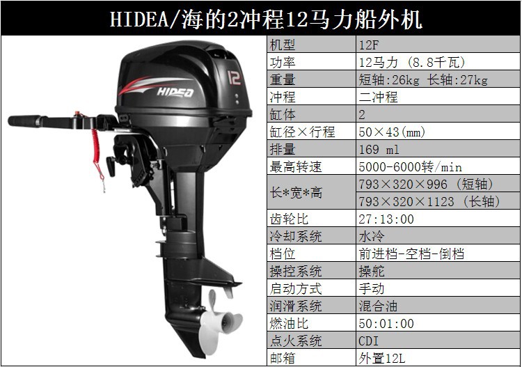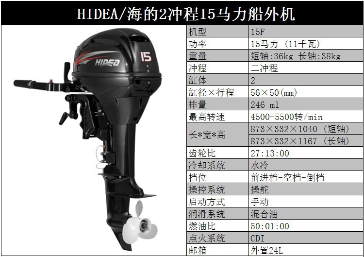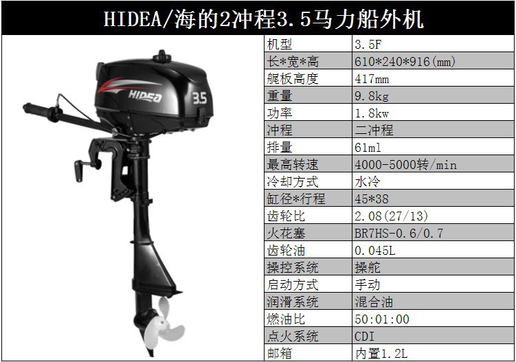 HIDEA海的船外机3.5P/4/5/6/12/15/18/30/40/48/60P橡皮艇马达1250元