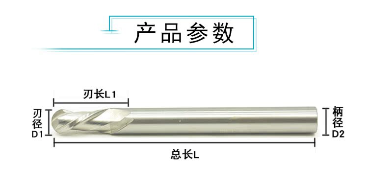 T刃数 | 刃径D1(mm) | 刃长L1(mm) | 柄径D2(mm) | 总长L(mm) |