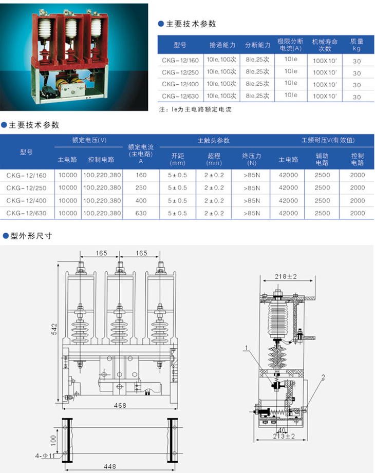 | CKG-12/160,250,400,630型交流高压真空接触器 | |