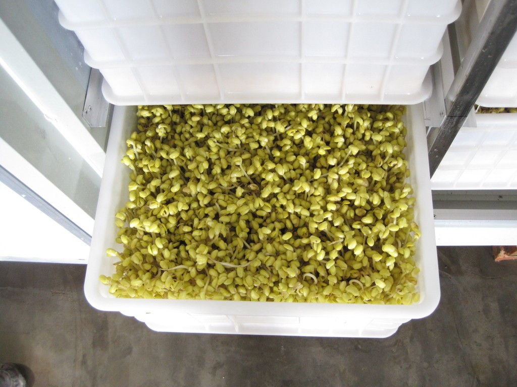 使用:该机器内有6个育芽箱,每天下豆2.5-3公斤豆子,将浸泡好的豆子平均放入2个育芽箱内(豆芽的生长周期是4天),经过豆芽4天的生长即可出菜30公斤。