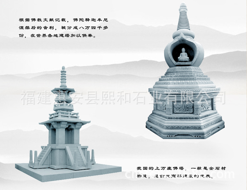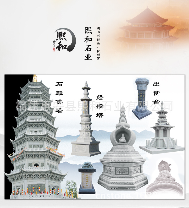 石塔是各种石料雕刻而成,有着特定的形式和风格的中国传统建筑。历经各***展,石塔种类多样,造型美观,随着时代的更新变换,逐渐从***世界走向世俗世界。