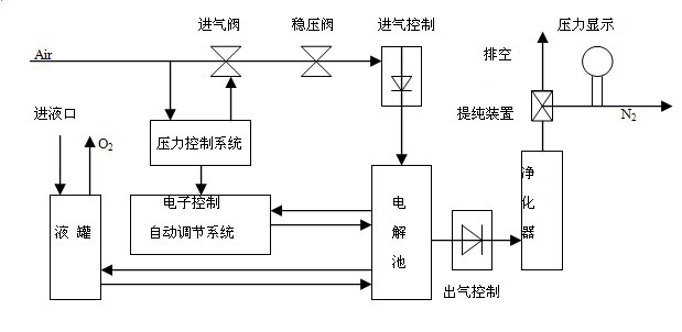 本仪器主要由电解系统、压力控制系统、净化系统和显示系统组成。电解氮采用物理吸附法和电化学分离法相结合的方式直接从空气中提取高纯氮气,电解池采用全不锈钢结构,***催化物制作催化层,使氮气纯度大幅度提高。