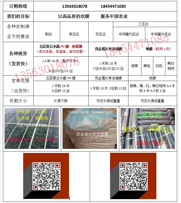 规格:1到20米 厚度:8丝10丝12丝15丝 现货销售!!!