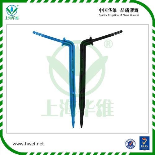 滴箭是滴灌中常用的一种***器,具有灌溉精准、出水均匀等优点,是盆花、盆栽植物、苗木及立体绿化等作物灌溉***合适的***器。有弯箭和直箭,可单箭、双箭、四箭、八箭等随意组合,施工方便。箭头部分长约10cm,用于插入土壤或栽培基质中固定导流;柄部长约5cm,设有精细迷宫流道,插入内径3mm左右的软管中。