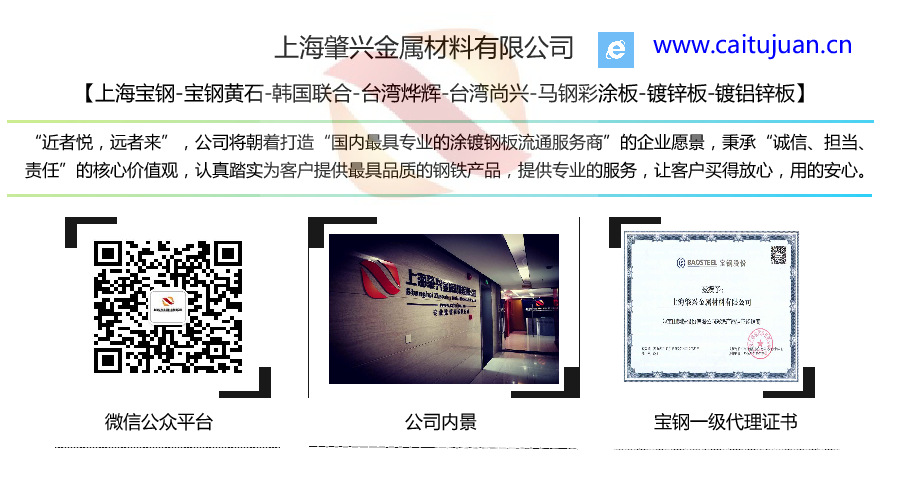 我司与宝钢、马钢、联合铁钢、尚兴中国、烨辉中国、鞍钢、邯钢等钢厂建立了战略合作关系,主营彩涂钢板、镀锌钢板、镀铝锌本色板、铝镁锰板、冷轧及热轧板卷、电工钢等钢铁品种。