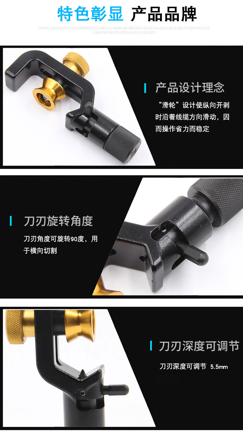 • 刀片深度***大可调整至5.5 毫米,以适应不同的电缆外护套