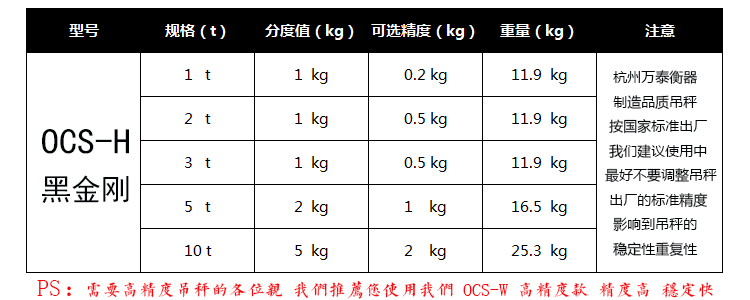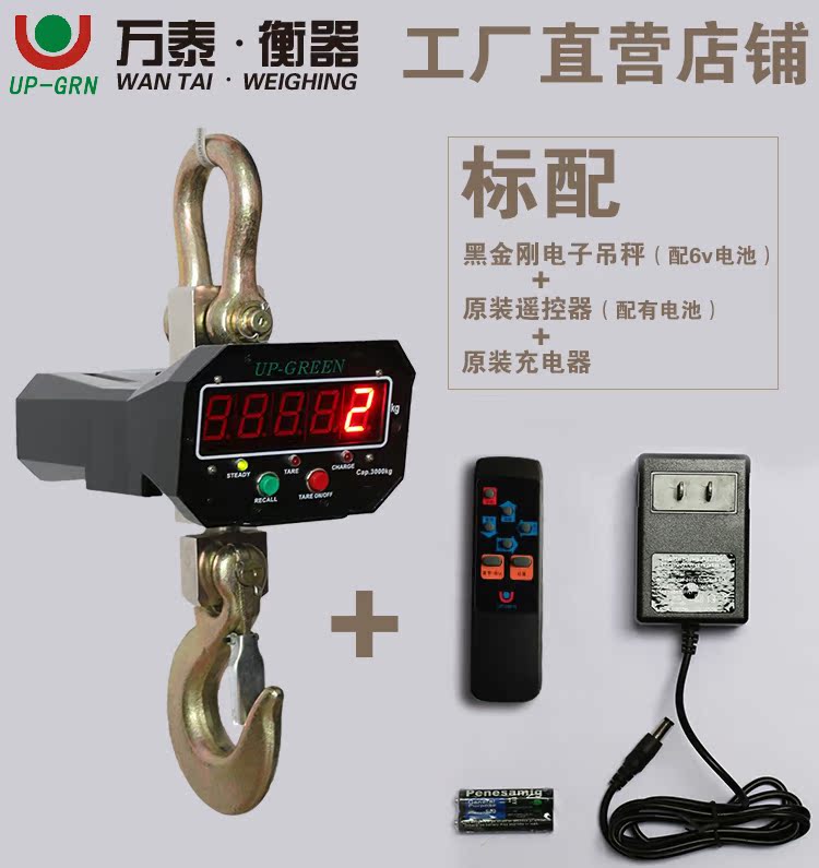 标 配:黑金刚ocs-H吊秤+标配遥控器+原装充电器+原装秤体电池、遥控器电池+产品说明书、保修卡+20kg家用小手提秤(一般工厂使用妥妥的,几十米远都看得清!
