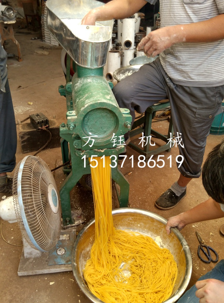 经过全新技新该机设计更加合理。机器在运行过程靠螺旋推进摩擦挤压产生热量,确保机器生面投入,熟面输出。面条出机后即为熟品,又在机器下部增加了自动风干系统,使生产出的面条不会因为温度高湿度大而粘连在一起。因而生产的玉米面条更具有韧性、弹性、不粘牙、久煮不断、久泡不散,不浑汤、不易断条、色泽金黄、清亮剔透、***大限度保留了玉米原有的自然风味。制出的面条外观光滑细腻,颜色金黄剔透,柔软可口,久煮不断不糊,入口自觉浓郁的玉米芳香,是一种美味可口的***绿色***添加剂食品,具有极高的营养价值。同时该机还可以生产其他的杂粮面条,米线,粉条,米粉。一机多用,大大减少投入,创造更高的经济效益。效益分析;每50公斤玉米渣(糁)可加工出70公斤鲜玉米面条,如果去掉原料成本和水电费,工人工资,净利润100元。