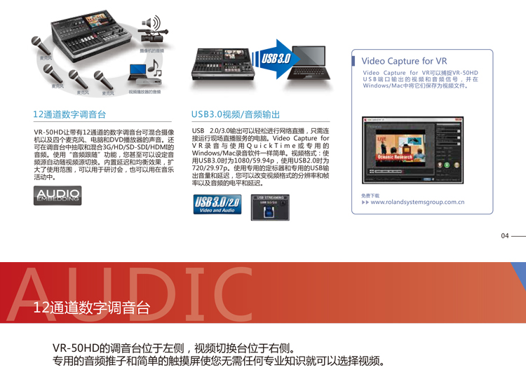 Roland/罗兰 VR-50HD/vr50hd 多功能HD 多格式 音视频切换台