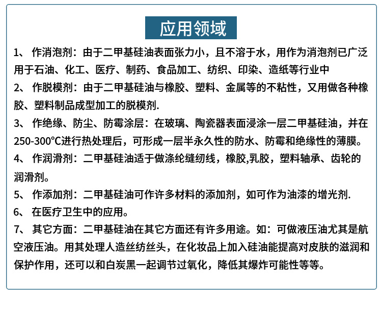 我公司专注高性价比产品:耐高温硅油,高温油浴硅油,还有各种硅油可供大家挑选,咱们简单列举几个:201甲基硅油、羟基硅油、含氢硅油、乙烯基硅油、制线硅油、长链***硅油、脱模油、干性硅油、水溶性硅油、润滑油、高沸硅油、聚醚改性硅油、苯甲基硅油,美国道康宁硅油PMX-200此外,还有各种粘度107胶,高低粘度107硅橡胶,可以室温硫化的107室温硫化硅橡胶,油墨消泡剂,涂料消泡剂,油性消泡剂,一次性纸杯、纸碗专用硅油,马桶阻尼油,汽车减震器油,绝缘油,***手套脱模油,硅胶手套脱模油,玻璃容器用硅油,刹车油,制线硅油,高速缝纫线硅油等等各种硅油均有,欢迎大家咨询洽谈!