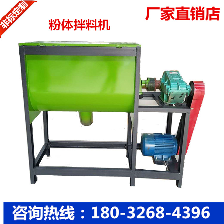卧式螺带搅拌机由安装于搅拌轴上的内外径螺旋带动桶体内物料,使搅拌器在桶体内***大范围翻动物料。搅拌器结构上,螺旋设计成内外、左右互为反螺旋,搅拌器工作时内螺旋带动靠近轴心处物料做轴心旋转,轴向由内至两侧推动,外螺旋带动靠近桶壁物料做轴心旋转,轴向由两侧至内推动,于是造成物料在桶体内对流循环、剪切渗混,完成物料在较短时间内快速均匀混合。