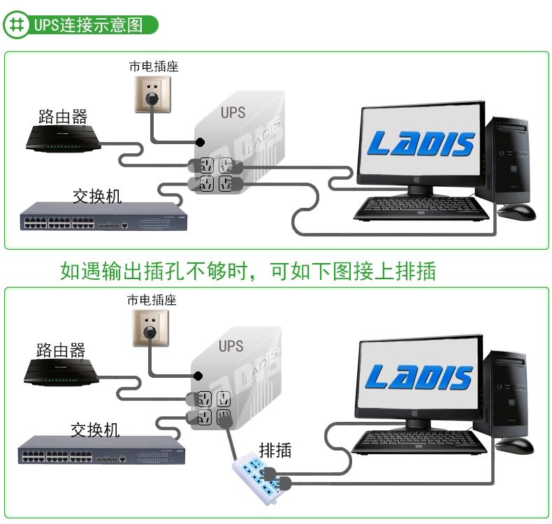 2:旁路插座设计,可连接高负荷设备而不损害UPS