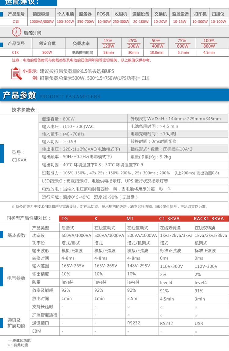 | 新款深圳山特1000VA长***C1KS 800W ***8小时 含电池 | |||||||