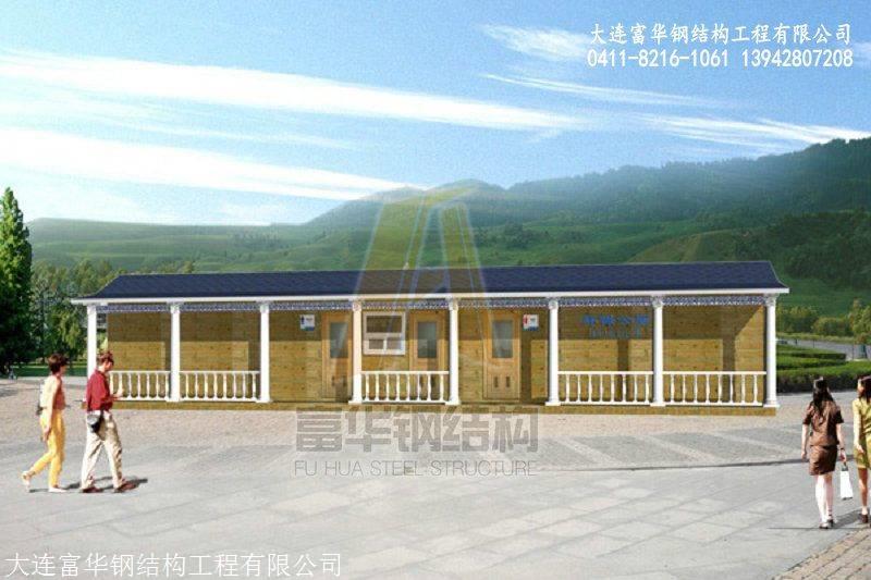 关于我们:来自国内的***品牌:富华集城房屋前身为大连富华钢结构工程有限公司,富华***专注生产各式可移动式多功能房屋产品,目前产品涵盖范围包括(但不限于)整体房屋、轻钢别墅、别墅轻体房、环保厕所、微生物厕所、免水冲型移动厕所、泡沫封堵式生态厕所、多功能景区厕所、欧式保安亭、各式岗亭、值班室、垃圾房、生态房屋、整体房屋、欧式岗亭、轻钢房屋、别墅轻体房、景区小木屋、整体移动房、轻体房、保安亭、售货亭、生态别墅、木屋别墅、移动房、被动房、环保厕所、旅游区景观多功能房屋。环卫休息室、配电房、设备房、以及其他未定义的可定制型房屋产品。