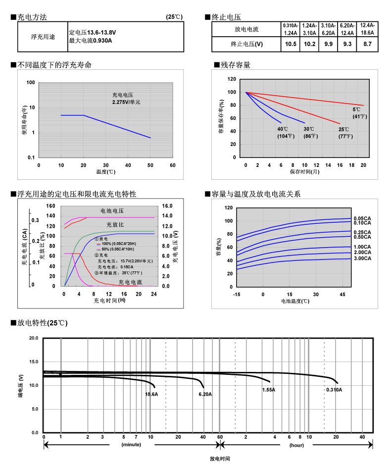 7、耐大电流性好:完全充电状态的电池2CA放电5分钟或10CA放电5秒钟。无导电部分熔断,无外观变形。