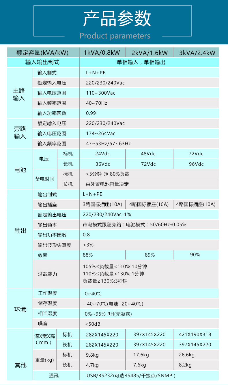 华为ups2000-a-1kttl电源完善可靠的电池欠压、输出短路、超载、超电压、超温等保护