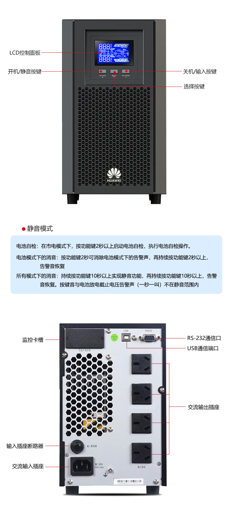 华为ups2000-a-1kttl电源便捷的正面维护屏幕