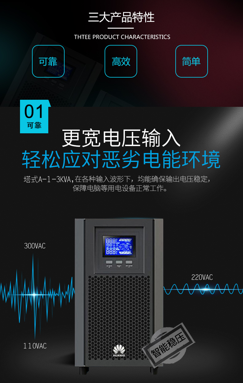 华为ups2000-a-1kttl电源宽市电输入范围(110-300VAC)