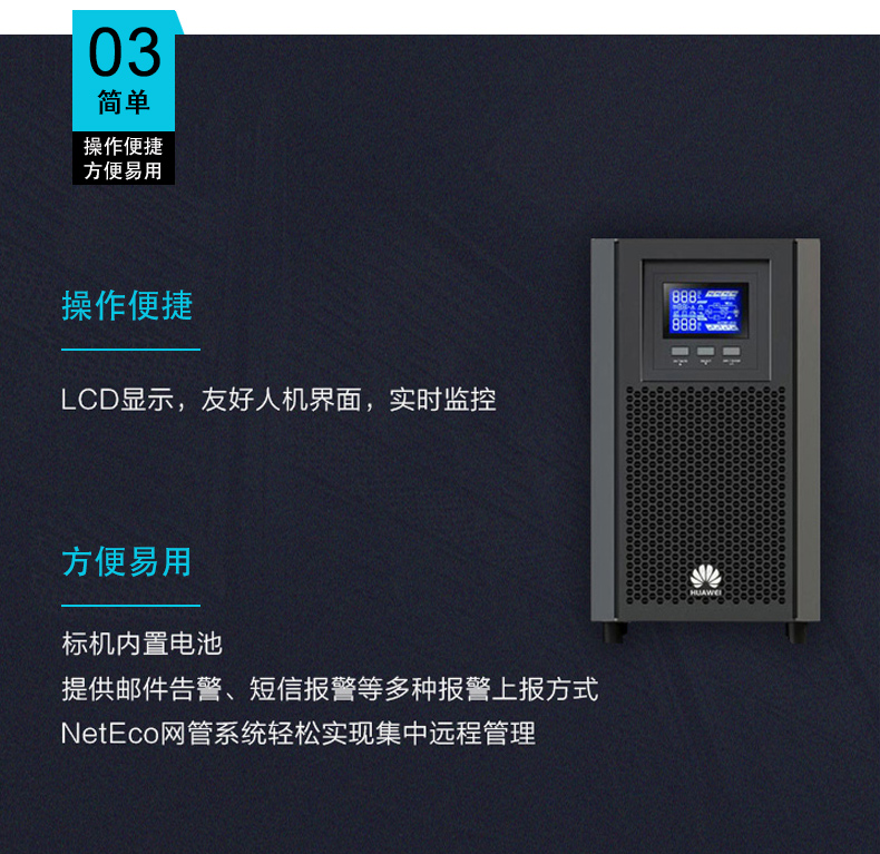 华为ups2000-a-1kttl电源具有***节能、稳定长寿、***智能、快速布置的使用特点