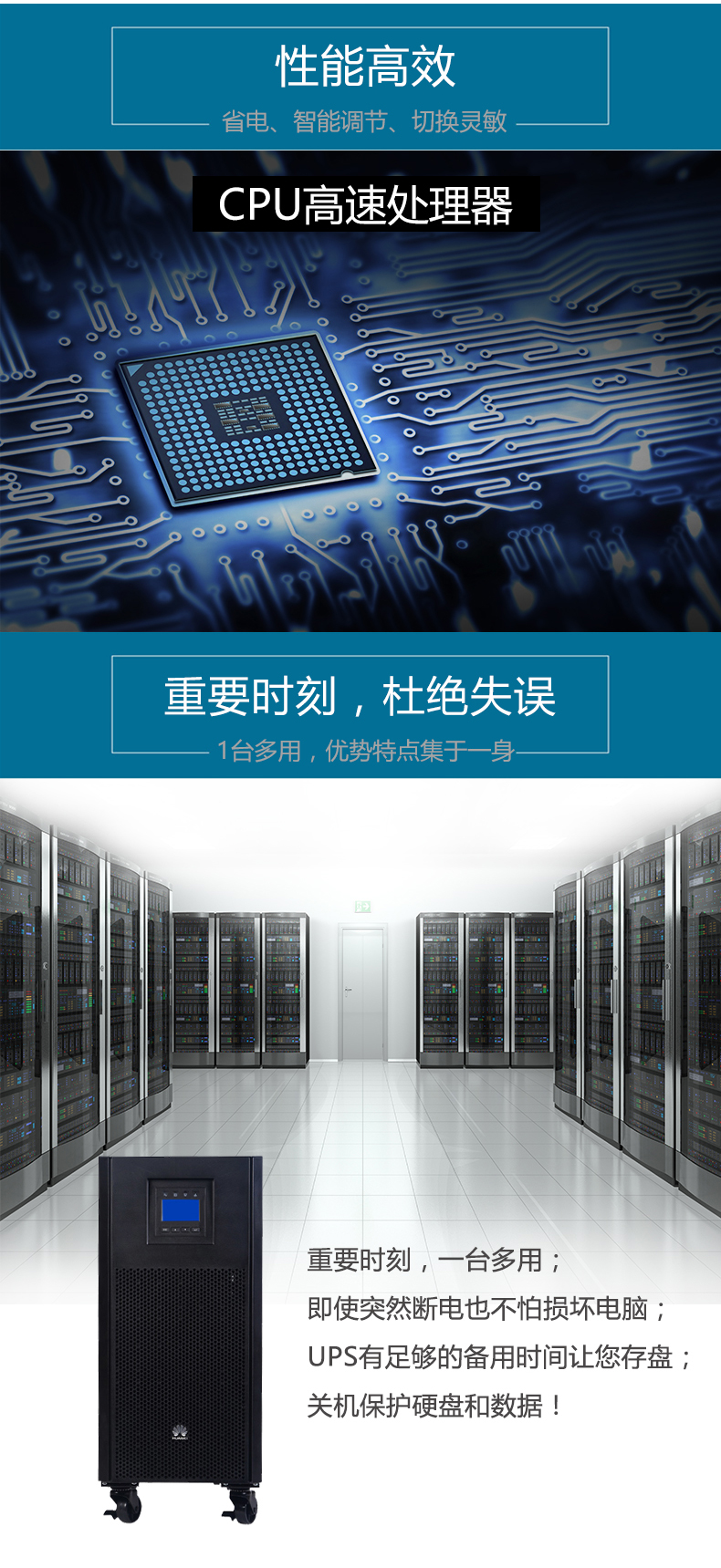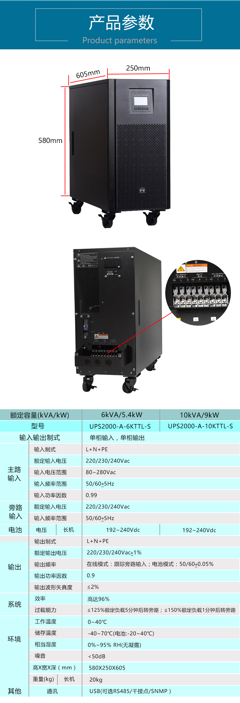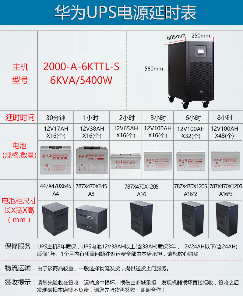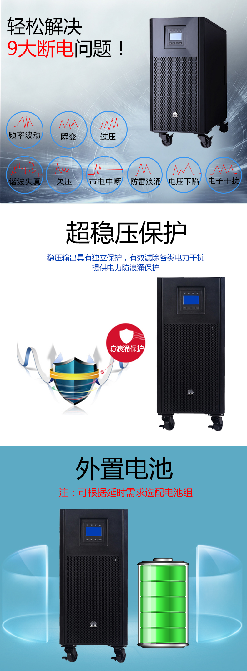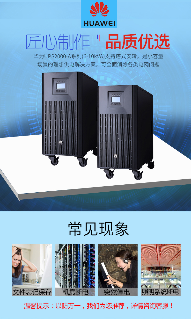 华为UPS不间断电源2000-A-6KTTL-S 6KVA 5400W 在线式机房服务器稳压防雷电源 华为UPS电源2000-A-6KVA供电2小时