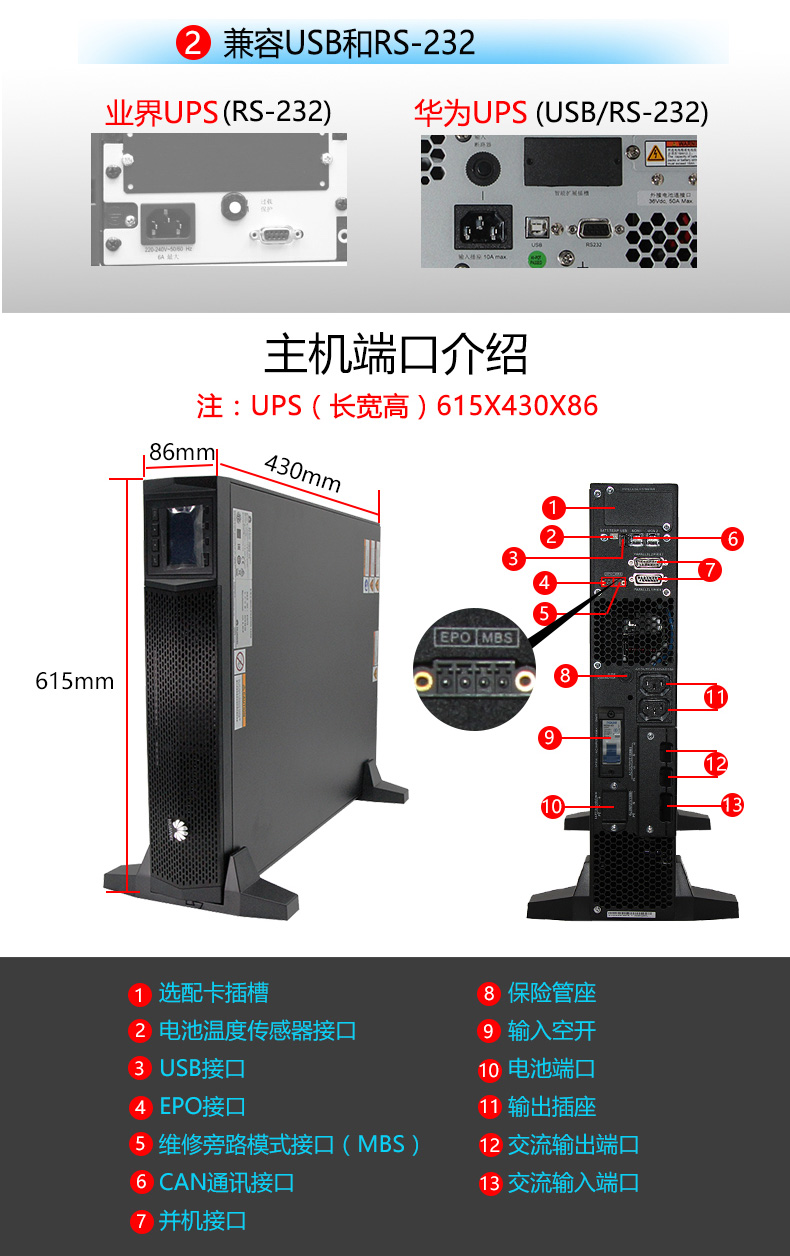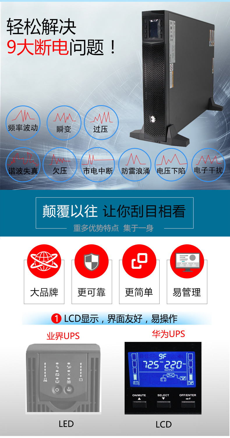 华为在线式UPS不间断电源2000-G-6KRTL 6KVA 5400W 机架塔式两用稳压长供电电源 华为UPS电源2000-G-6KVA供电8小时