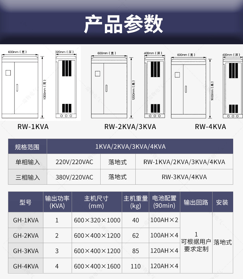 双变频在线式设计,采用DSP技术,具有完善的保护。