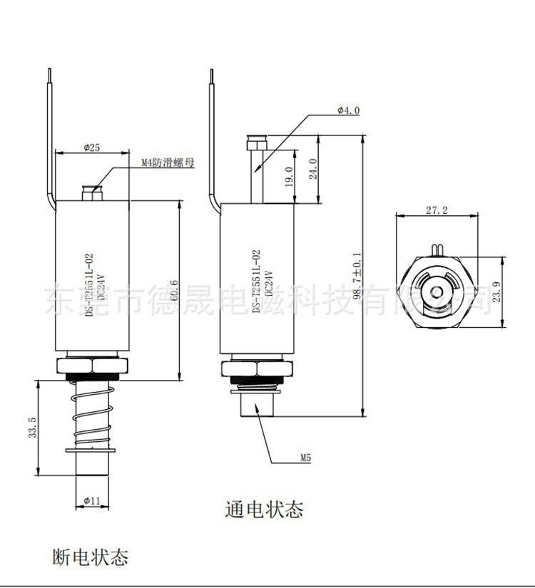 1.产品名称型号:圆管式电磁铁 DS-T2551L-02